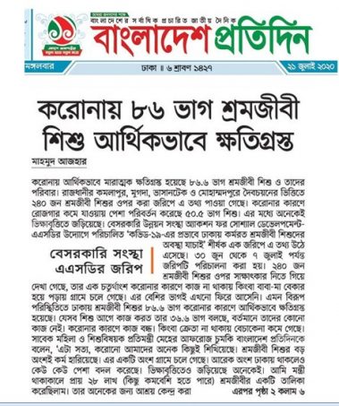 Dissemination Event of Sharing the Study Findings on “The Situation of Child Domestic Workers in Dhaka City.”